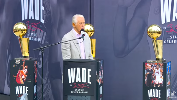 哈斯勒姆第一个上台发言,之后帕特-莱利登台夸赞以及祝贺韦德,韦德的儿子扎伊尔讲话时,韦德动情落泪;