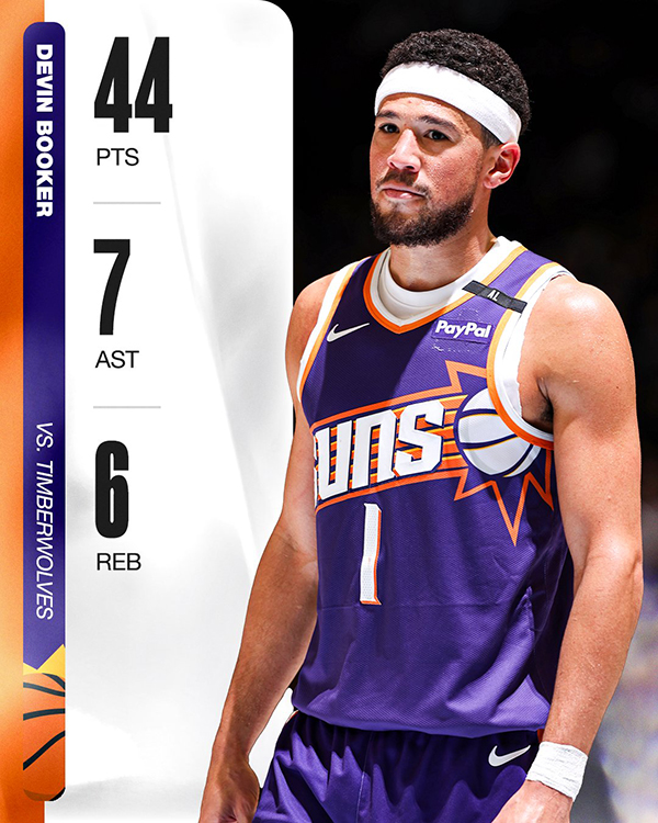 本场比赛,杜兰特和比尔都因伤缺席比赛,布克一人轰下44分7助攻6篮板却在关键时刻多次打铁,而且最后3分40秒,兰德尔和爱德华兹带队打出13-3的逆转高潮,最终森林狼主场险胜太阳;兰德尔拿到35分7助攻4篮板,爱德华兹24分6助攻4篮板。