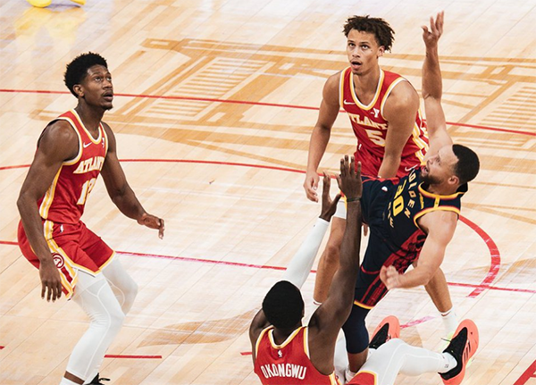 下半场,库里第三节组织进攻,不仅带队牢牢掌控局面,而且两次助攻小佩顿暴扣,库里下场后勇士进攻火力下滑,老鹰继续反扑追分,三节打完勇士的领先优势还有15分,这一节库里没有出手,仅靠罚球拿到2分,送出3次助攻。