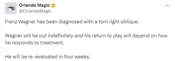 右斜肌撕裂困扰魔术:小瓦格纳伤停四周,球星伤病梦魇再现