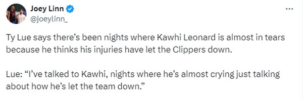 小卡因伤深陷自责:沮丧落泪边缘,连续25场缺阵恐拖垮快船