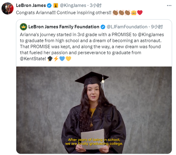 NBA的赛季很漫长,目前湖人14胜12负排在西部第10位,未来詹姆斯可能再次轮休;另外值得一提的是,詹姆斯不仅复出,而且在退网27天后重回社媒,祝贺自己基金会赞助的优秀大学毕业生Arianna,推特写道:恭喜你Arianna!!!继续去激励他人吧!