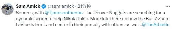 据The Athletic名记Sam Amick报道,联盟多位消息人士透露,随着上周末交易限制窗口打开,距离交易截止日(2025年2月8日)还有不到两个月的时间,掘金正在联盟中寻找一名能在进攻端提供重要帮助的球员。