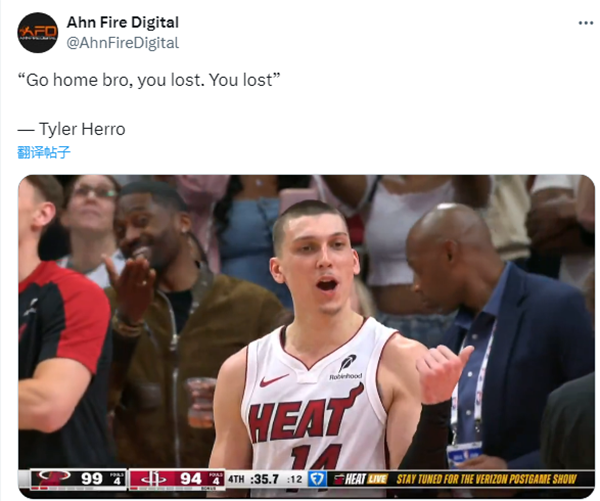 赛后热火球员希罗和罗齐尔坐在更衣室中冲着镜头竖中指,也这样的方式继续回应打架冲突,不过他们可能因这样的行为被联盟追加罚款。