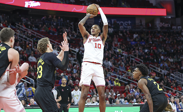 小贾巴里-史密斯是火箭首发五虎之一,他已经为火箭打满了前33场比赛;赛季至今,21岁的史密斯为火箭首发出战33场比赛,场均登场30.9分钟,能够拿到11.9分6.5篮板1助攻1盖帽0.4抢断,投篮命中率43.%,三分命中率35.4%,罚球命中率86.7%。