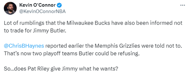 名记KevinO'Connor则报道称巴特勒也告知无意为雄鹿效力。