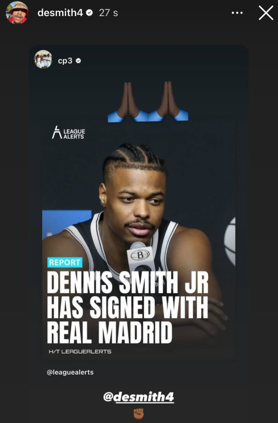 据知名媒体Sportando报道,丹尼斯-史密斯将加盟皇家马德里,俱乐部希望将他作为法昆多-坎帕佐的替补。皇家马德里队认为他是球队完美的补充,可以为球队轮换注入得分和运动能力。同时他可以为关键首发球员打替补,而不会破坏球队的默契。