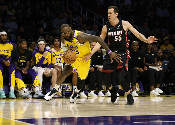 末节詹姆斯带队9-2反超5分,热火5-0追平比分,詹姆斯继续组织进攻,克里斯蒂、八村垒和文森特输送火力,5分29秒湖人打停热火;暂停回来,八村命中底角三分,热火继续反扑,关键时刻詹姆斯轰进三分以及两次中投得分,一人连得7分带领湖人又拉开分差,最终湖人主场复仇热火。