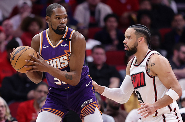 上一场杜兰特18投12中轰下34分仍不敌灰熊,30000分里程碑之夜遗憾输球;今日太阳客场背靠背大战火箭,布克和比尔都因伤休战,杜兰特单核带队高效输出仍输球,太阳遭遇三连败。