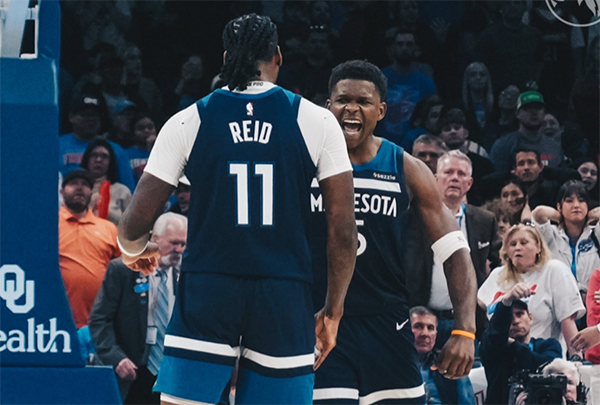 加时赛两队打得十分刺激,最后30秒,爱德华兹错失关键三分,但里德抢到篮板并且补篮造犯规两罚全中,暂停回来,亚历山大突破杀到禁区,上篮瞬间惨遭亚历山大大帽,华子送出制胜盖帽,香农抢到关键篮板,之后雷霆犯规战术,沃克两罚全中,亚历山大迎着华子强投,错失绝平三分,最终森林狼131-128加时逆转雷霆。
