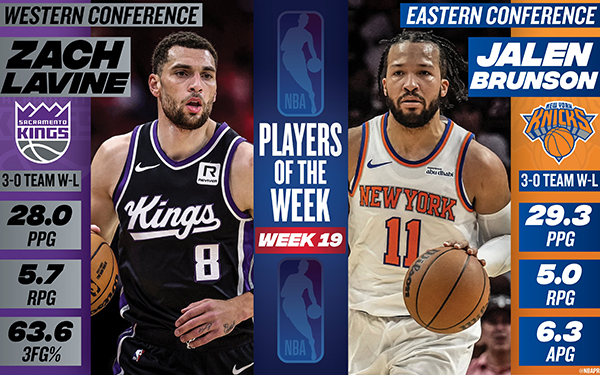 来源:直播车03-04 17:01直播车讯北京时间3月4日,NBA官方揭晓了2024-25赛季第19周东西部周最佳球员归属。纽约尼克斯队的杰伦-布伦森与萨克拉门托国王队的扎克-拉文分别凭借统治级表现荣膺殊荣,而勒布朗-詹姆斯、斯蒂芬-库里、卢卡-东契奇等超级巨星虽提名却未能折桂。