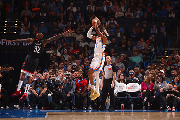 主场大战火箭,第一节亚历山大火力全开,单挑杰伦-格林撤步中投,频频杀到禁区强硬得分,单挑谢泼德轰进不讲理撤步三分,首节打满12分钟,12投7中爆砍20分,扛起球队的进攻大旗,带队顽强缩小分差,第一节打完追到仅落后1分。