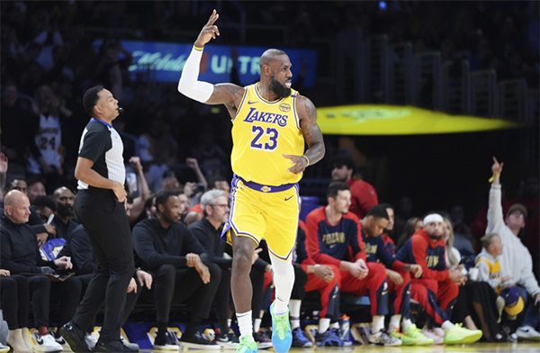 湖人在主场轻取击败鹈鹕,詹姆斯和东契奇都至少轰下30分且命中5记三分,第一节湖人双巨连线,东契奇助攻詹姆斯命中三分,这是詹姆斯解锁50000分里程碑的一球。