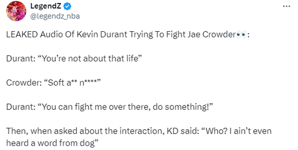 赛场冲突升级!杜兰特遭骂软蛋,直接约架:来打一架