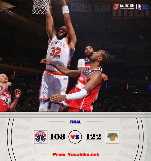 尼克斯122-103战胜奇才 唐斯31+11 布里奇斯27+6 普尔25分