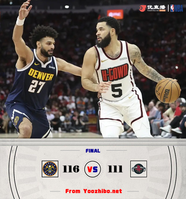 来源:直播车03-24 10:08 直播车讯:北京时间3月24日NBA常规赛,客场作战的掘金以116-111击败火箭。