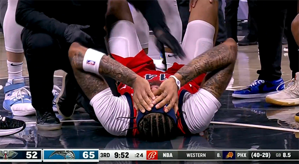 来源:直播车03-22 14:01直播车讯 北京时间3月22日,在鹈鹕和魔术的比赛中,鹈鹕球星英格拉姆的膝盖反关节扭伤,表情痛苦十分难受,被两人搀扶离场,因伤提前退赛。