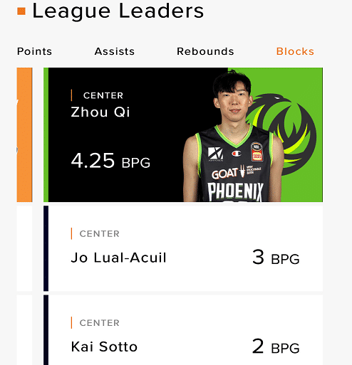 出色的身体条件让周琦的盖帽、出手高度等都很好,NBL常规赛至今,周琦已经独自领跑盖帽榜。周琦目前以场均贡献4.25次盖帽,领跑榜单,第二名是Jo Lual-Acuil场均盖帽3次,远远落后于周琦。本赛季周琦的场均数据是13.7分7.7篮板1.25抢断4.25盖帽,相当全面,而且这还是在周琦开局两场比赛更多的是寻找比赛状态和队友配合的情况下打出的,所以可以看出,周琦的表现是越来越好的。