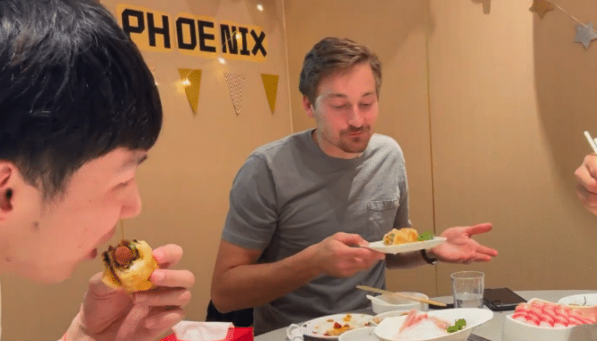 来源:直播车12-16 15:41直播车12月16日讯 近日凤凰队的芒福德,巴普洛夫和鲁本兰奇都在社交媒体上晒出了自己吃火锅的内容,原来是队友请大家吃火锅。周琦也发布了视频,可以看到这三人向周琦学习使用筷子,然后夹着吃羊肉片,感觉还不错,队友们学习的也很快。火锅店的小哥拉面条,鲁本也想试一下,但可惜效果不佳。队友也催促了起来,鲁本没有继续尝试,而周琦在一旁笑的很开心。