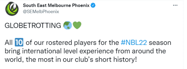 来源:直播车09-30 11:05直播车9月30日讯 ,澳大利亚联赛的墨尔本凤凰队更新社媒,晒出了新赛季的10人阵容,并配文写道:“环球旅行!我们新赛季全队的10名球员,都有国际比赛的经历,在俱乐部的短暂队史上是最多的。”