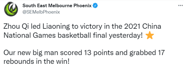 看来,凤凰队对自己新赛季的阵容相当满意。自从周琦签约以来,他们多次晒出周琦的动态,前不久,还恭喜周琦帮助辽宁队拿到全运会的冠军。