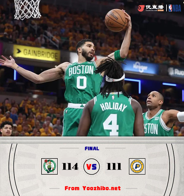 直播车5月26日讯 NBA季后赛东部决赛G3,步行者今日回到主场迎战凯尔特人,双方前两战凯尔特人都取得胜利大比分2-0领先,此役哈利伯顿和波尔津吉斯均缺战。比赛上来,凯尔特人就率先进入状态打出8-2的开局取得领先,步行者虽然一直处于落后但始终紧咬比分,首节他们只落后1分,次节步行者继续冲击内线,特纳连续得分帮助球队成功反超,托平的追身中距离更是将分差拉开到两位数,半场结束时凯尔特人落后12分;下半场回来,步行者的命中率有所下降,不过凯尔特人也并没有迫近比分,双方一直围绕着十分左右的分差展开拉锯,末节凯尔特人发起凶猛的反扑,比赛悬念也是打了回来,关键时刻霍勒迪打成反超2+1,内姆哈德中距离打铁,随后又是被霍勒迪面断,内史密斯绝平三分不中,最终凯尔特人18分逆转步行者,大比分3-0拿到赛点。