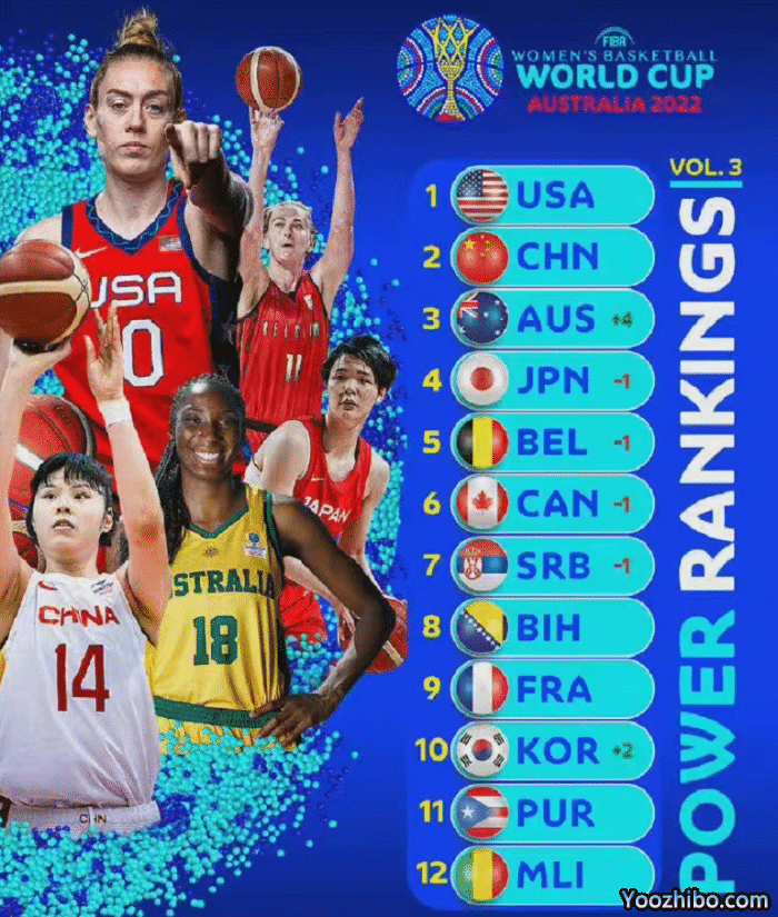 而这一次FIBA依旧看好中国女篮,实力榜上甚至仅次于美国女篮,主要原因还是纸面实力上,中国女篮的确是有足够的底气,两位WNBA级别球员韩旭,李月汝,在国际赛场上有过不俗表现的李梦,王思雨,以及颇具潜力的李缘和武桐桐,人员配置上的确是具备被看好的理由,FIBA把中国女篮排在第二也无可厚非。第三名则是澳大利亚也不令人意外,东京奥运会亚军日本女篮排在第四。