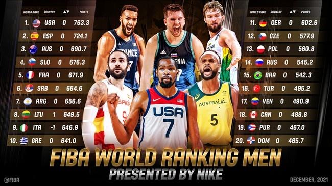 来源:直播车12-08 10:36直播车12月08日讯 ,FIBA官方公布了世界各国男篮的最新世界排名,世界篮坛大环境基本没变,排在前三位的仍是美国、西班牙和澳大利亚!