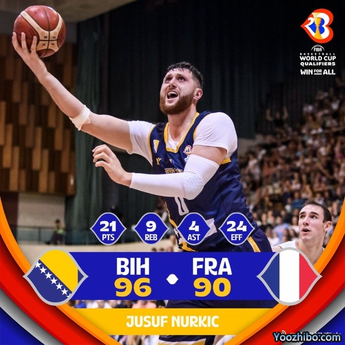 直播车讯:北京时间2022年8月28日,波黑男篮双加时96-90击败法国队,努尔基奇和戈贝尔犯规在法国队的比赛中,波黑首节一度领先18分,法国队领先12分在第三季度。结果,波黑20-0进攻波黑。波黑在第四节一度领先10分,法国队紧追不舍。双方经历了两次加时赛,波黑96-90战胜法国队。