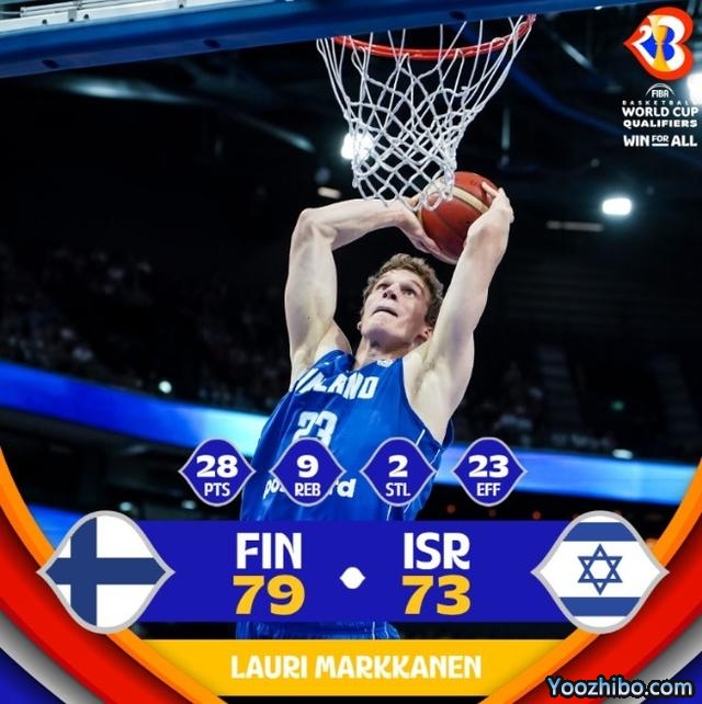 直播车讯 8月26日讯在今天结束的一场世预赛第四窗口期的比赛中,芬兰79-73击败以色列。