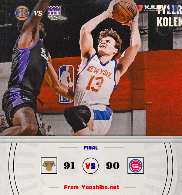 直播车 7月20日讯 NBA夏季联赛,尼克斯对阵活塞。比赛开始,小杜安-华盛顿撑起尼克斯进攻,单节得分上双,但活塞则是首发五虎全面皆兵,双方展开对攻战,首节尼克斯仅领先1分,次节尼克斯突然陷入3分钟得分荒,尼克斯11-0建立双位数领先,詹金斯挑篮破荒,但尼克斯替补发挥出色能给出回应,半场尼克斯建立10分领先。下半场,活塞再度进攻端断电,打了6分多钟仅得6分,尼克斯顺势拉开20分以上领先,好在萨瑟里突外投连续砍分缩至13分,末节尼克斯也突然断电,4分钟内仅得1分,活塞9-1小高潮追至5分,尼克斯接连杀伤走上罚球线止血,萨瑟三分追到仅剩1分,比分持续胶着,萨瑟三分和霍兰补篮都没把握住机会,但尼克斯发球5秒违例,萨瑟绝杀中投不中,最终尼克斯91-90险胜活塞。