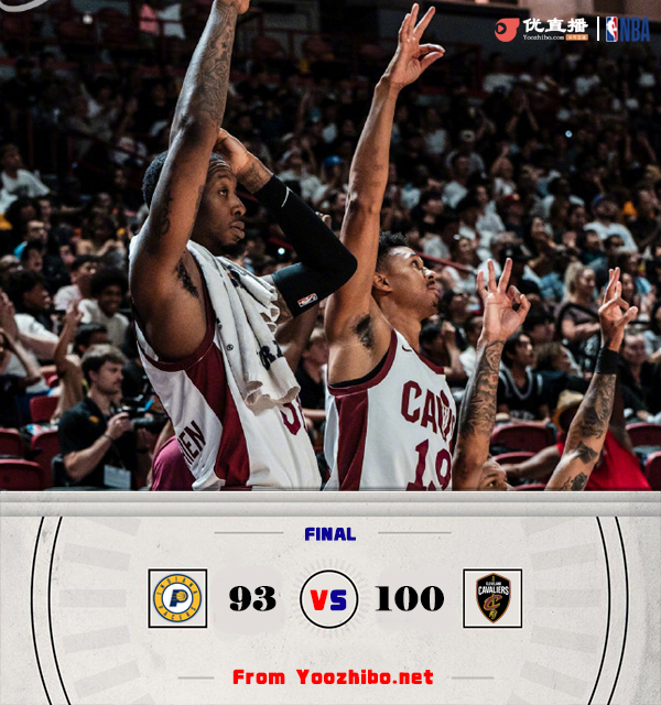 直播车 7月21日讯 NBA夏季联赛排位赛,步行者对阵骑士。上半场,双方势均力敌,比分交替领先,骑士持续发力打出10-2的攻击波占据主动,步行者内外开花迅速追赶,南斯补篮得手,步行者连中两球抹平分差,半场战罢骑士38-38战平步行者。下半场,两队依旧打得难解难分,步行者内外开花,骑士里突外投还以颜色,末节双方争夺陷入白热化,关键时刻骑士连中3记三分确立优势,步行者无力回天。最终,骑士100-93力克步行者。
