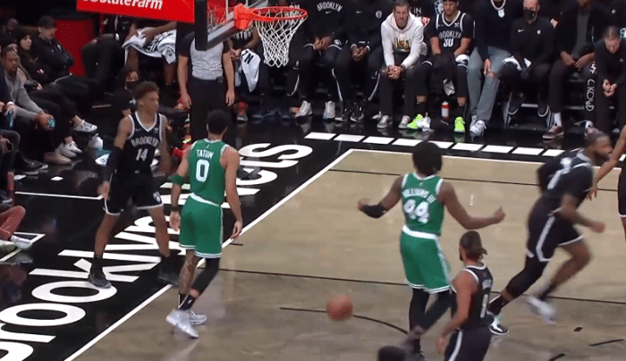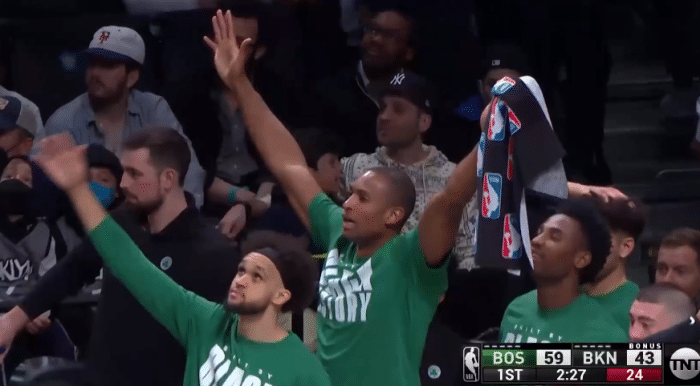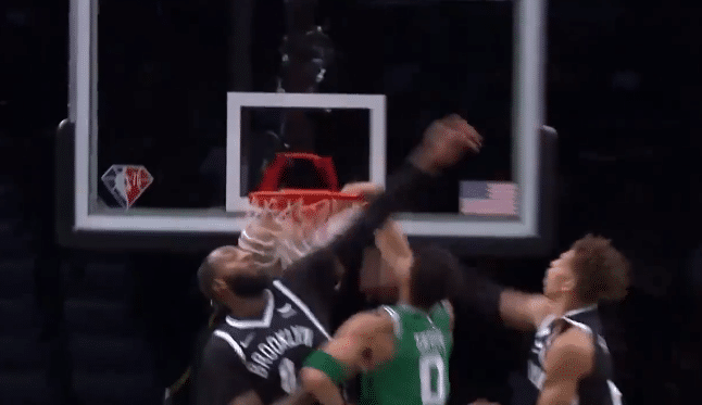 塔图姆1V3单臂隔扣庄神,霸气!怒瞪篮网小将,替补席嗨了