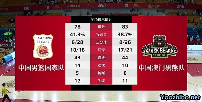 中国男篮78-83惜败澳门黑熊 最后3分多钟仅得2分
