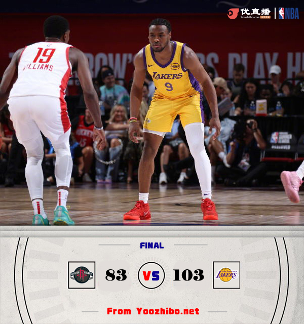 末节,威廉姆斯上篮命中,丹特扣篮得分,火箭领先23分。辛森上篮得分,特拉奥雷连续扣篮,湖人还落后17分。火箭又换回谢泼德和惠特莫尔。惠特莫尔连得5分, 布朗尼抢断得手,克内克特三分命中。谢泼德扣篮得分后又抛投命中。布朗尼三分继续打铁,最终,火箭轻取湖人。