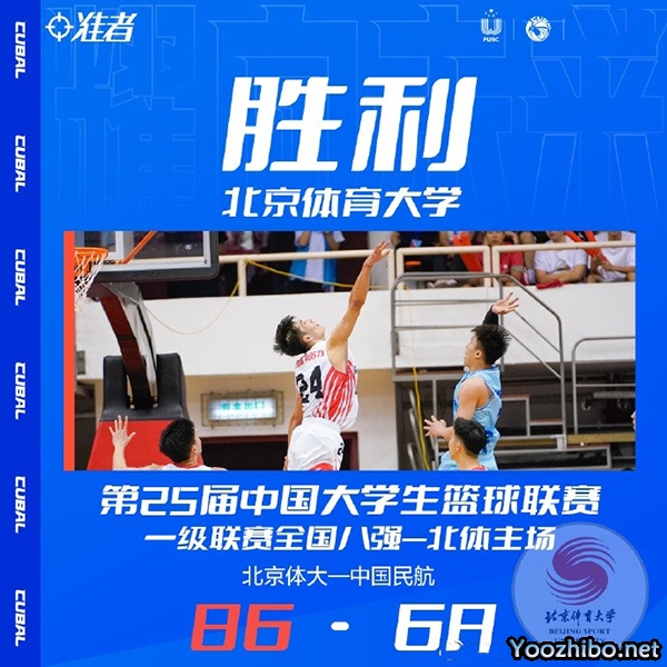 直播车讯:北京时间5月27日讯 CUBAL全国八强赛正式打响,首场比赛北京体大主场对战中国民航,两队在东北赛区两次对战各有胜负:小组赛中国民航7分胜北京体大,淘汰赛北京体大以7分成功复仇将民航逼入附加赛。