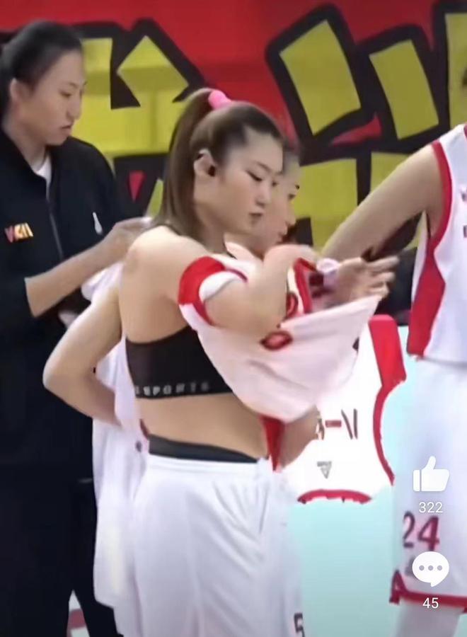 有白人帅哥示爱,李梦会放弃张隆吗?其实李梦在比赛前的一个习惯就已经给出了答案,这个习惯就是场边换球衣。众所皆知,为了避免走光,女篮球员一般都会在更衣室穿上球衣再出来热身。