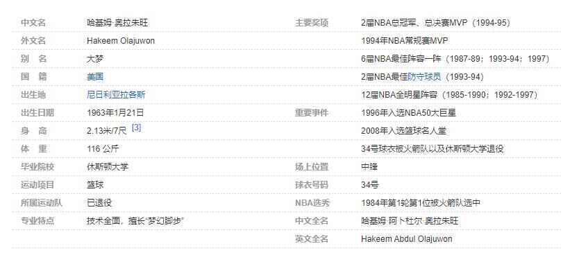 哈基姆-奥拉朱旺个人详细资料简介: