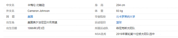2019年7月7日,太阳队官方宣布签下卡梅伦-约翰逊。