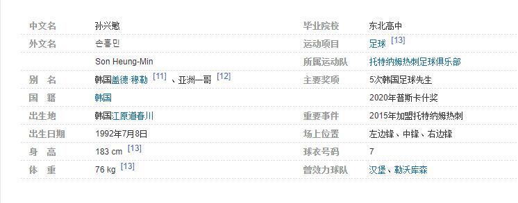 孙兴慜(Son Heung-Min),1992年7月8日出生于韩国江原道春川(Chuncheon)市,韩国足球运动员,司职前锋,效力于英超托特纳姆热刺足球俱乐部。