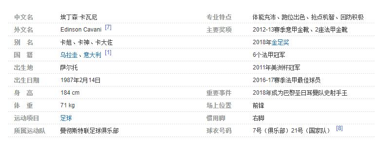 埃丁森-卡瓦尼(Edinson Cavani),1987年2月14日出生于乌拉圭萨尔托,拥有乌拉圭和意大利双重国籍,乌拉圭足球运动员,场上司职前锋,现效力于英格兰超级联赛的曼彻斯特联足球俱乐部