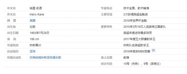哈里-凯恩基个人资料简介:
