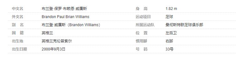 布兰登·威廉斯(Brandon Williams),全名:布兰登·保罗·布赖恩·威廉斯(Brandon Paul Brian Williams),2000年9月3日出生于英格兰克伦普索尔,英格兰足球运动员,司职左后卫,效力于英格兰足球超级联赛的曼彻斯特联足球俱乐部。个人简介: