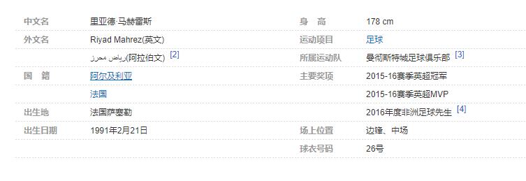 里亚德·马赫雷斯(Riyad Mahrez),1991年2月21日出生于法国萨塞勒,拥有阿尔及利亚/法国双重国籍,阿尔及利亚职业足球运动员,司职边锋,亦可兼任中场,效力于英超的曼彻斯特城足球俱乐部。个人简介: