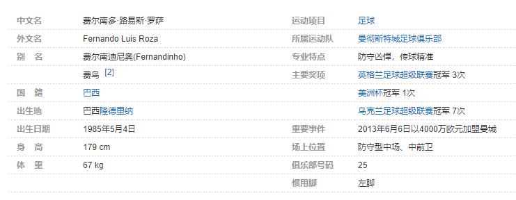 费尔南迪尼奥(Fernandinho),全名费尔南多·路易斯·罗萨(Fernando Luis Roza),1985年5月4日出生于巴西隆德里纳,巴西职业足球运动员,司职中场,现效力于英格兰足球超级联赛的曼彻斯特城足球俱乐部,并担任球队队长。个人简介: