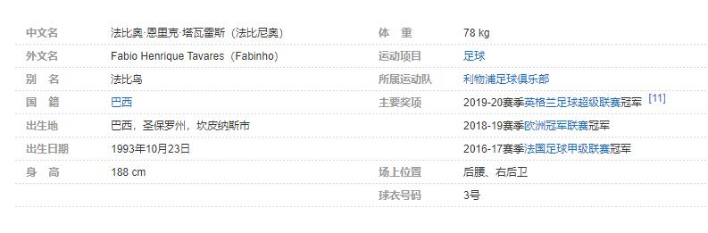 法比奥·恩里克·塔瓦雷斯(Fabio Henrique Tavares),简称法比尼奥(Fabinho),1993年10月23日出生于巴西圣保罗州坎皮纳斯市,巴西足球运动员,场上司职后腰/右后卫,效力于英格兰的利物浦足球俱乐部 。个人简介: