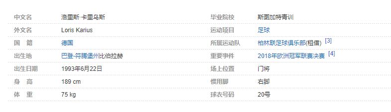 洛里斯·卡里乌斯(Loris Karius),1993年6月22日出生于德国巴登-符腾堡州里斯河畔比伯拉赫,德国足球运动员,场上司职门将,现租借效力于德甲柏林联足球俱乐部。个人简介: