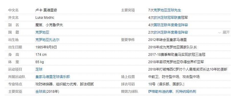 卢卡·莫德里奇(Luka Modric),1985年9月9日出生于克罗地亚扎达尔,克罗地亚足球运动员,司职中场,绰号“魔笛”,效力于西甲皇家马德里足球俱乐部,亦担任克罗地亚国家男子足球队队长。个人简介