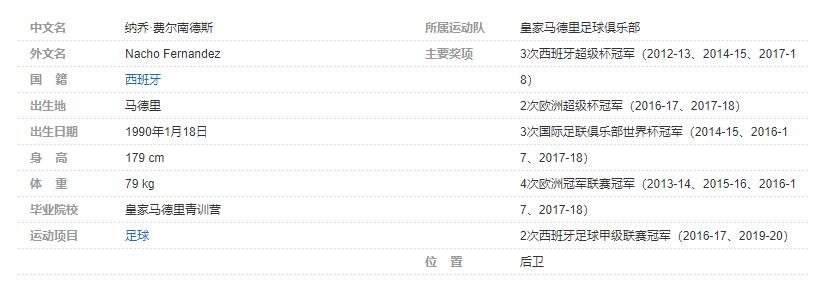 纳乔·费尔南德斯(Nacho Fernández),1990年1月18日出生于西班牙马德里,西班牙职业足球运动员,场上司职后卫,效力于西班牙足球甲级联赛的皇家马德里足球俱乐部 。个人简介