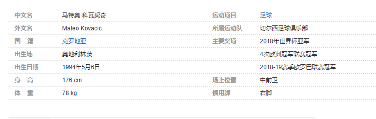马特奥·科瓦契奇(Mateo Kovacic),1994年5月6日出生于奥地利林茨,克罗地亚足球运动员,场上司职中前卫,现效力于英格兰足球超级联赛的切尔西足球俱乐部。个人简介